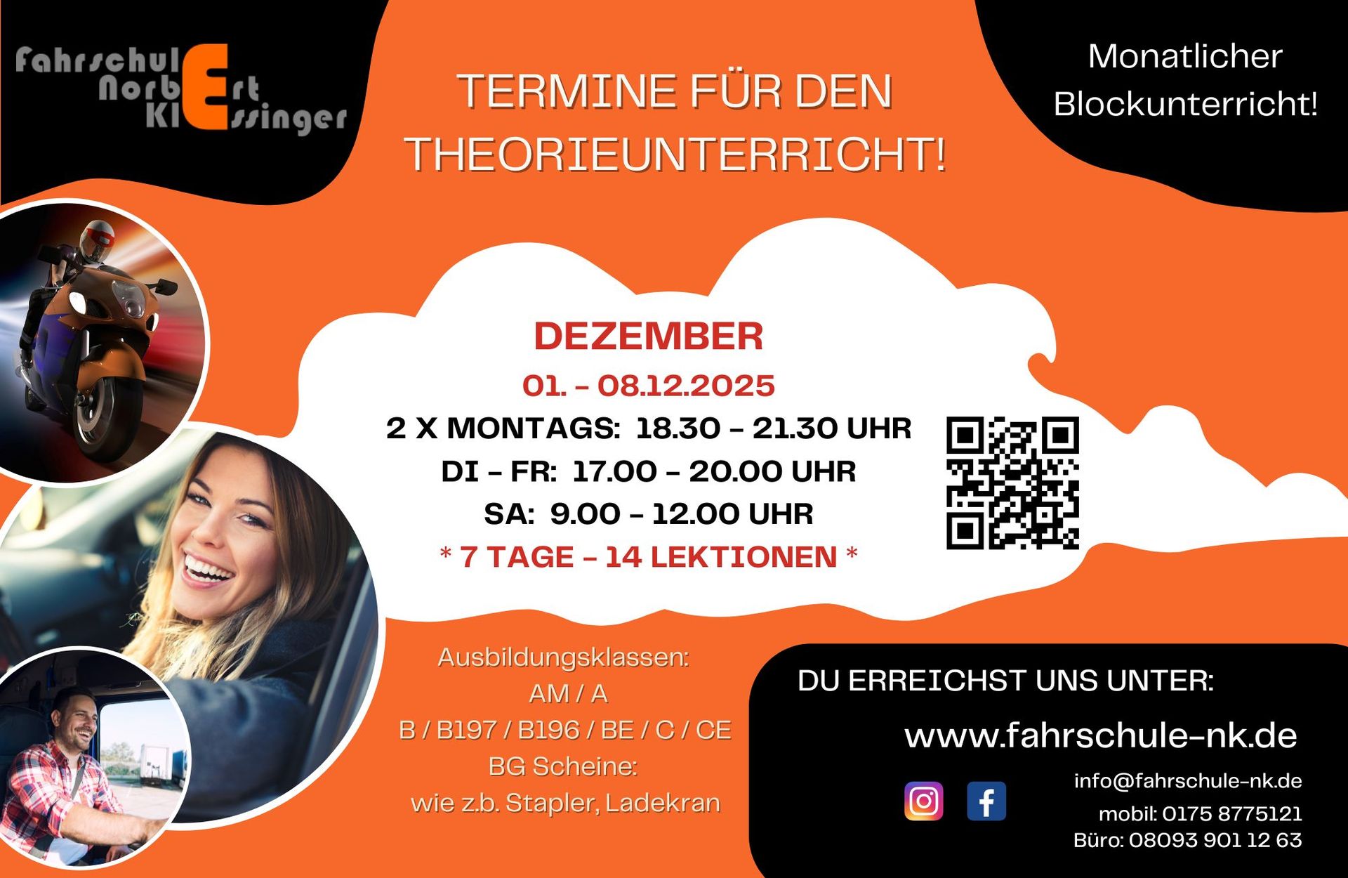 Reguläre Theoriestunden finden als Blockunterricht statt!